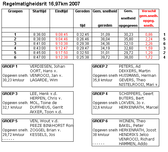 Uitslag regelmatigheidrit 2007 geteld over één ronde. 16,97 ipv 67,88 Km. Vanwege ongeval is het evenement voortijdig afgelast.
