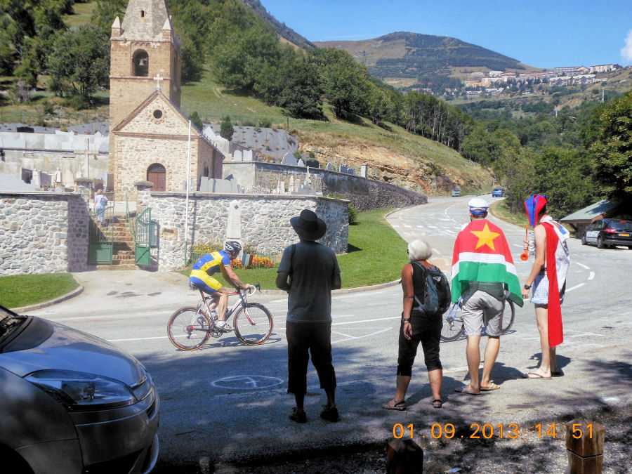 bekende Alp d'Huez waar de klimtijd geregistreerd werd. De tijden van onze