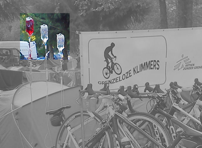 posten waar je wat kon eten en de bidons vullen. 's-Avonds vanaf 18.00u kon