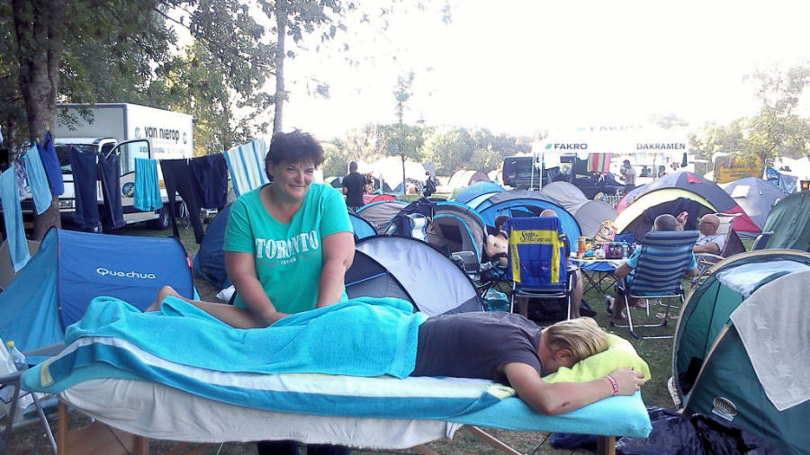 naar de volgende camping bracht en opbouwde. Daarnaast deden ze